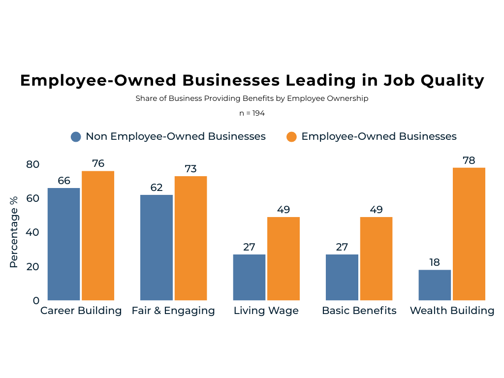 Employee ownership models are an innovative approach to addressing knowledge gaps among workers and enhance adoption and worker financial health by building a culture of collaboration and trust: 78% of these employee-owned businesses provide wealth-building benefits compared to only 18% for traditional businesses.