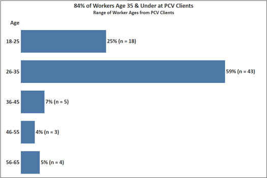 - Employees tend to be younger and not fully appreciate retirement benefits: 84% of employees at PCV businesses fall between 18 and 35 years old.